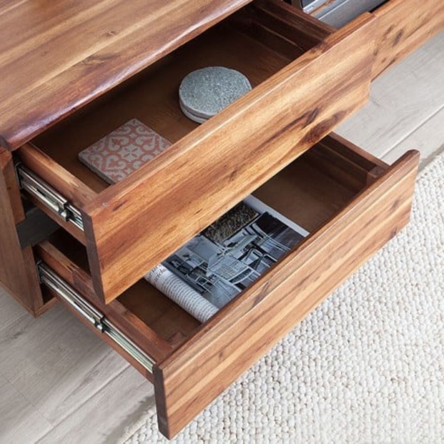 Solid Acacia Wood Trunk TV Cabinet Frame Industrial Finish
